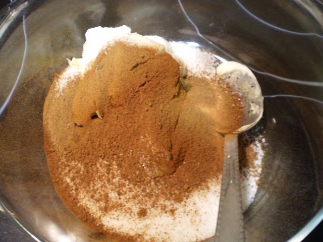 Colocamos en un bol, el queso, el yogur, el azúcar y el café soluble convertido en polvo y removemos bien con delicadeza, no demasiado fuerte, para que no pierda consistencia y quede líquido.